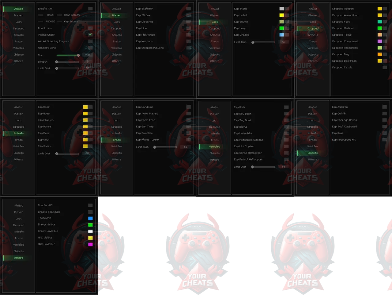 DullWave для Rust — это универсальный чит для улучшения ваших навыков и полного контроля в игре. Благодаря продвинутому Aimbot вы сможете выбирать цель по кости, учитывать траекторию и проверять видимость, что гарантирует точные выстрелы. ESP-отображение предоставит полную информацию о противниках, включая скелеты, имена и дистанцию, а также данные о спящих игроках и их оружии. Лут-трекер с тонкими настройками поможет быстро находить ресурсы, медикаменты и ключевые предметы. DullWave также отслеживает транспорт, животных и ловушки, давая вам полное стратегическое преимущество. С настройкой цветов для команд вы всегда будете на шаг впереди врагов.