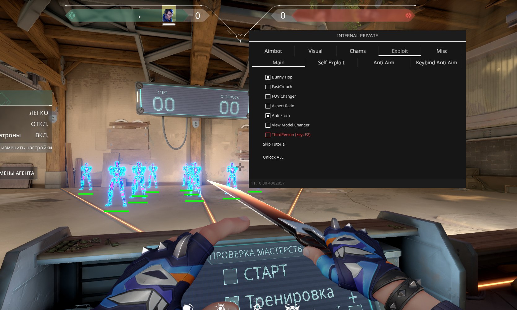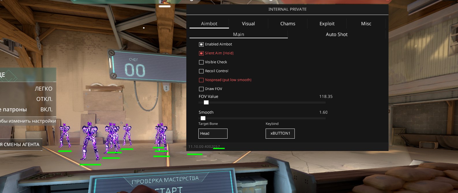 INTERNAL — это высокотехнологичный чит для VALORANT, разработанный для игроков, которые стремятся к доминированию на поле боя без неоправданного риска для аккаунта. Решение сочетает продвинутые игровые функции с продуманной системой защиты от обнаружения, позволяя вам выходить победителем в самых напряжённых матчах.