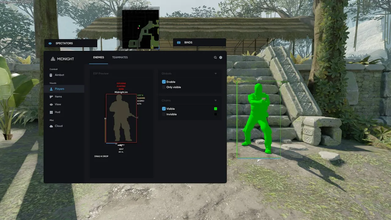 Midnight переопределяет стандарты легит-читинга в CS 2. Чит предлагает глубокую визуальную кастомизацию через систему ShadowCustoms, позволяющую настроить отображение противников (Chams, ESP Box) под ваш стиль игры. Умный аимбот с технологией PrecisionCore и доработанный Backtrack обеспечивают конкурентное преимущество, а модуль ZeroTrace гарантирует полную невидимость для VAC. Отключение графических эффектов в разделе Visuals оптимизирует производительность, а Triggerbot работает с максимальной естественностью.