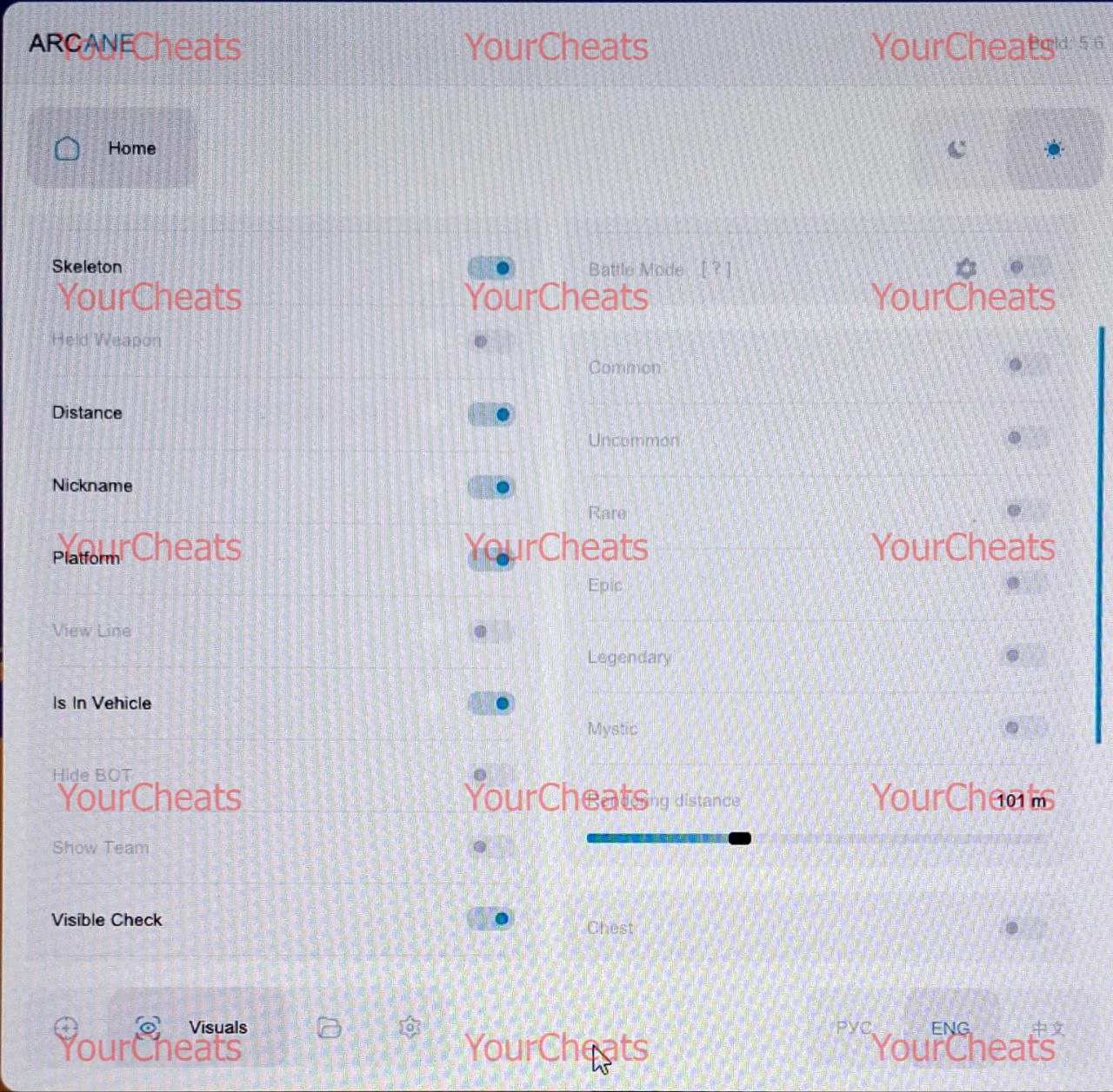 Приватный чит ARCANE — для Fortnite, который предоставляет полный набор инструментов для доминирования в игре. ARCANE включает функции аимбота, радара, ESP на врагов и ESP на лут, что позволяет вам с легкостью обнаруживать противников и ценные ресурсы. Уникальная возможность выбора языка интерфейса делает этот софт удобным для игроков со всего мира. Безопасность и защита от античита гарантируют стабильную работу без риска блокировки. С ARCANE вы получите все необходимое для комфортной и успешной игры.