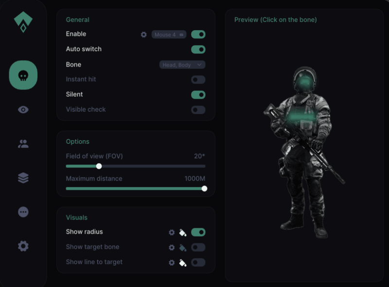 Включение/Отключение Aim и назначения горячей клавиши при активации.