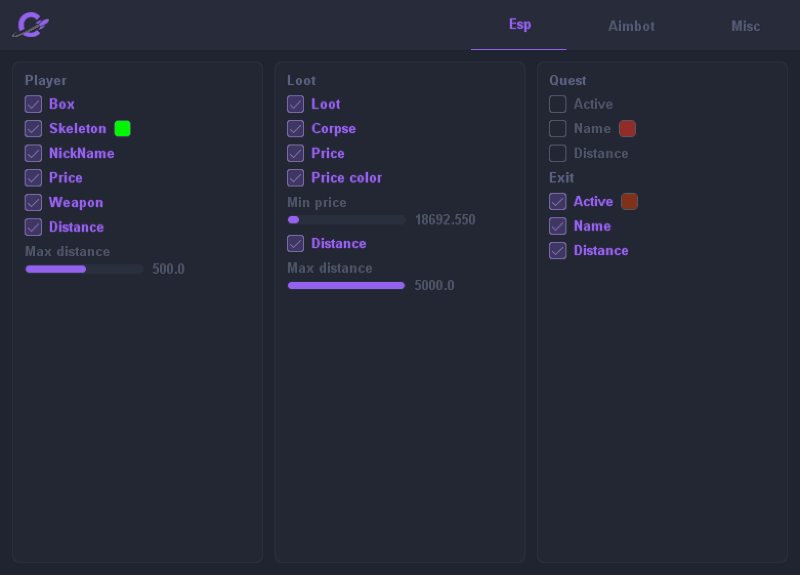 Collapse — ваш универсальный инструмент для всех режимов Escape from Tarkov, предлагающий интеллектуальный аимбот с адаптацией под баллистику оружия, ESP с фильтрацией целей и продвинутую систему защиты, работающую на уровне ядра для полной невидимости в PVE и Arena режимах, что делает его идеальным решением как для одиночных игроков, так и для команд, стремящихся к абсолютному превосходству без риска обнаружения.
