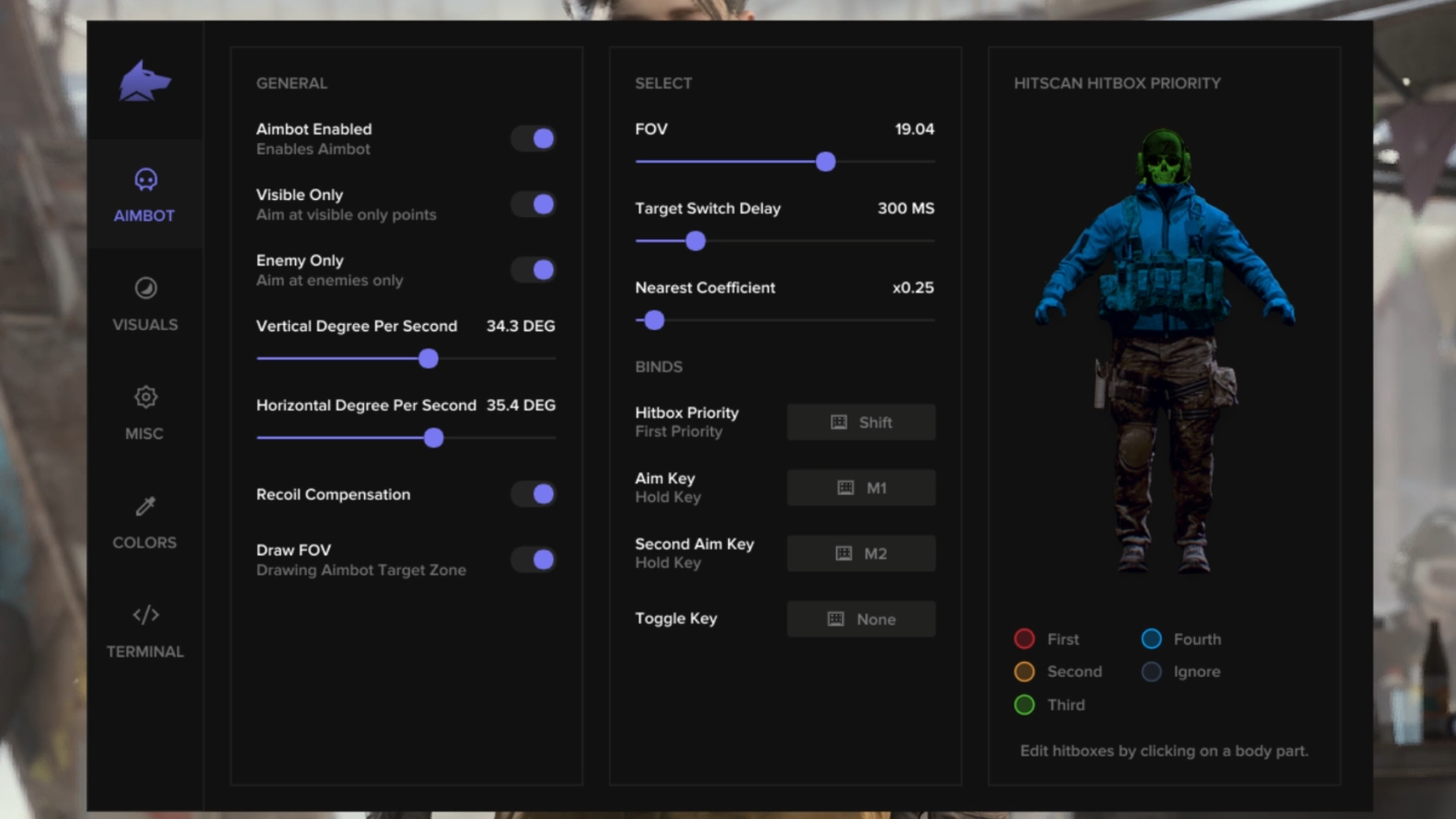 Приоритет хитбокса (Hitbox priority): Выберите приоритет аимбота для целей, таких как голова, тело и другие.