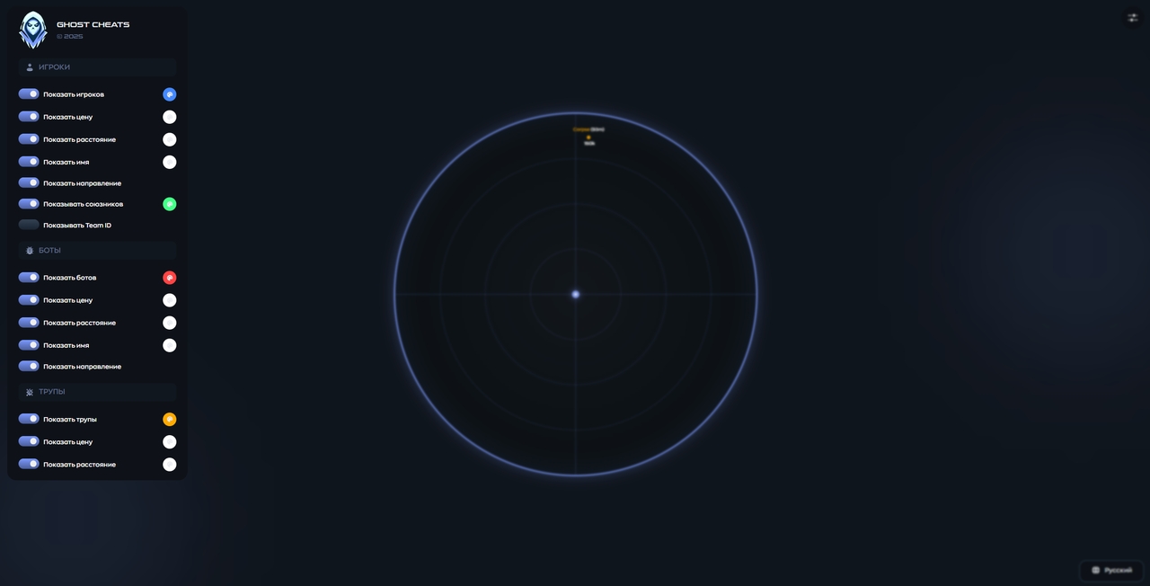 GHOST RADAR – это революционная система тактического видения для Arena Breakout. Радар отображает всех игроков на карте с указанием дистанции, состояния и экипировки, показывает ценный лут и точки извлечения, при этом оставаясь полностью невидимым для систем защиты. Технология Spectre Vision обеспечивает передачу данных без вмешательства в игровой процесс, гарантируя абсолютную безопасность вашего аккаунта.