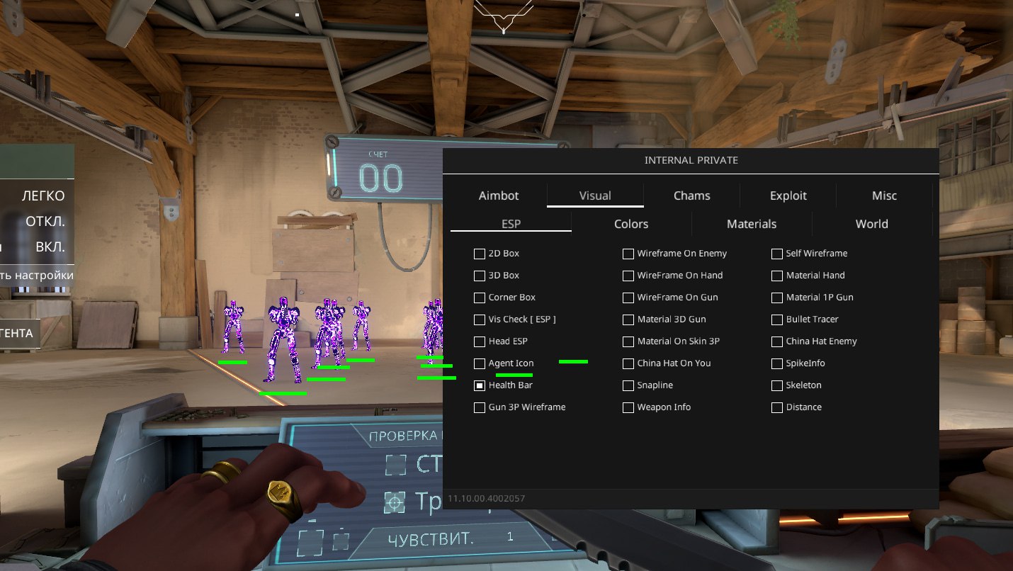 INTERNAL — это высокотехнологичный чит для VALORANT, разработанный для игроков, которые стремятся к доминированию на поле боя без неоправданного риска для аккаунта. Решение сочетает продвинутые игровые функции с продуманной системой защиты от обнаружения, позволяя вам выходить победителем в самых напряжённых матчах.