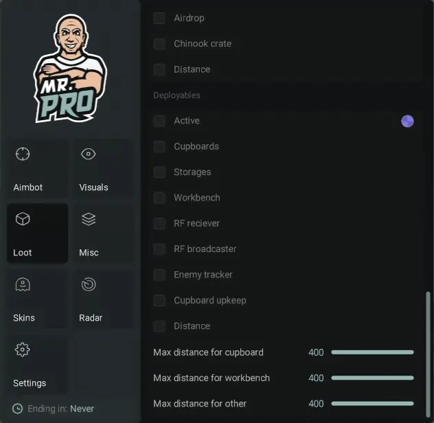 Хотите доминировать в Rust и всегда быть на шаг впереди противников? Mr Pro – это приватный чит, разработанный для максимального преимущества в игре. Аимбот, ESP, радар и Wallhack на лут помогут вам выживать и побеждать без лишних сложностей.