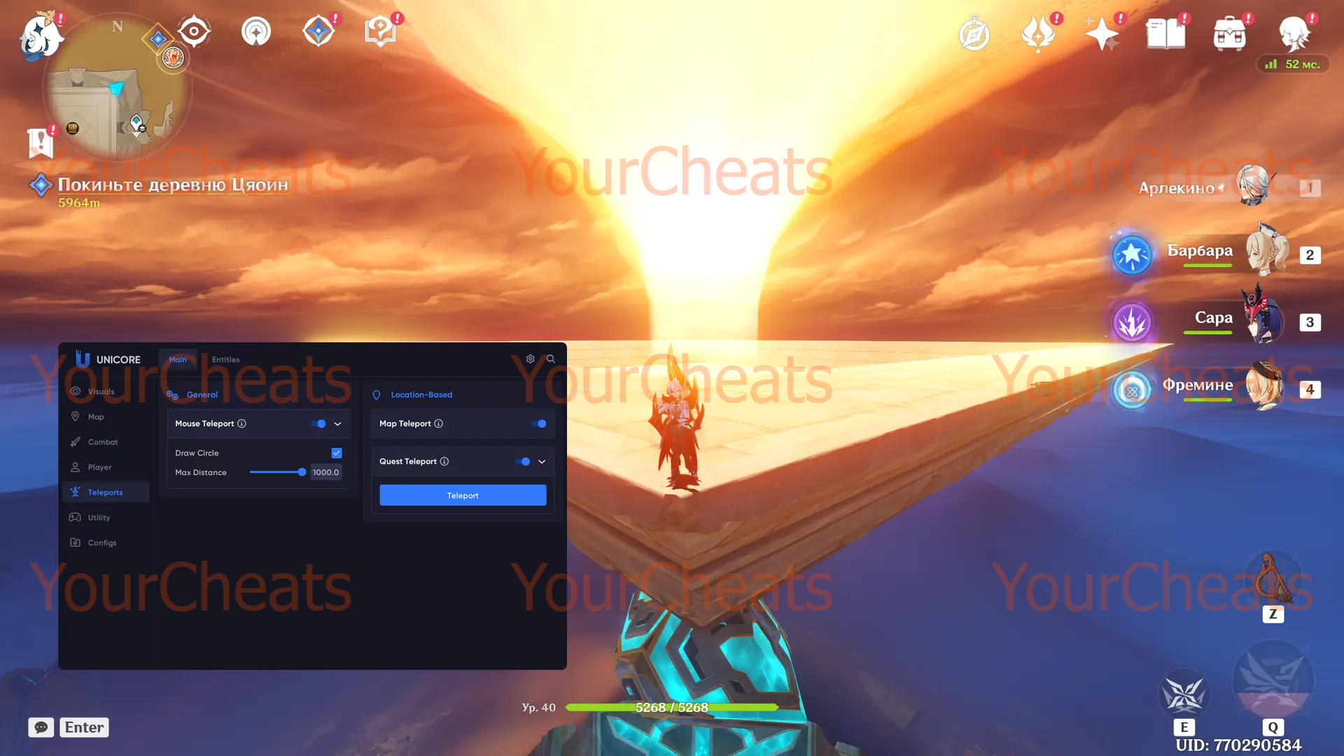 Unicore — это не просто чит, а революция в мире Genshin Impact. С этим мощным инструментом вы получите абсолютный контроль над игровым процессом Ваша игра изменится навсегда: моментальное прохождение сложных испытаний, доступ к самым редким ресурсам и полный контроль над игровым миром — теперь это реальность. Присоединяйтесь к тысячам игроков, которые уже выбрали Unicore от YourCheats, и откройте для себя Genshin Impact с новой стороны!